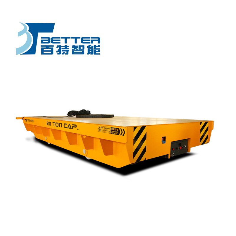 5t蓄電池電動(dòng)平車(chē)的蓄電池安裝在內(nèi)部,電源通過(guò)電氣控制系統(tǒng),給直流牽引電機(jī)提供電力,使轉(zhuǎn)運(yùn)車(chē)平穩(wěn)啟動(dòng)、停止、前進(jìn)、后退、調(diào)速等,該系列平車(chē)能夠在垂直軌道、l型軌道、S型軌道、弧形軌道及擺渡場(chǎng)合使用,噸位及尺寸可以非標(biāo)定制,該客戶定制的5噸電池平車(chē)作用于車(chē)間過(guò)跨使用。